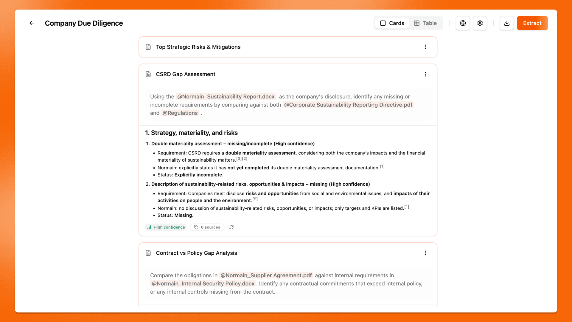 Source references make every insight transparent, so you can instantly trace results back to the exact evidence in the original document.